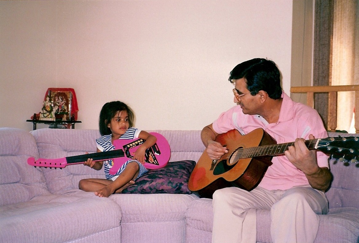 My dad and I playing guitar together. I absolutely cherished that pink electric guitar.