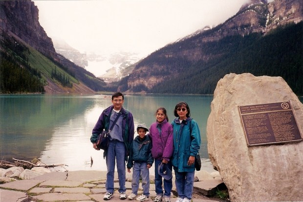 My family and I standing in front of the Rocky Mountains.