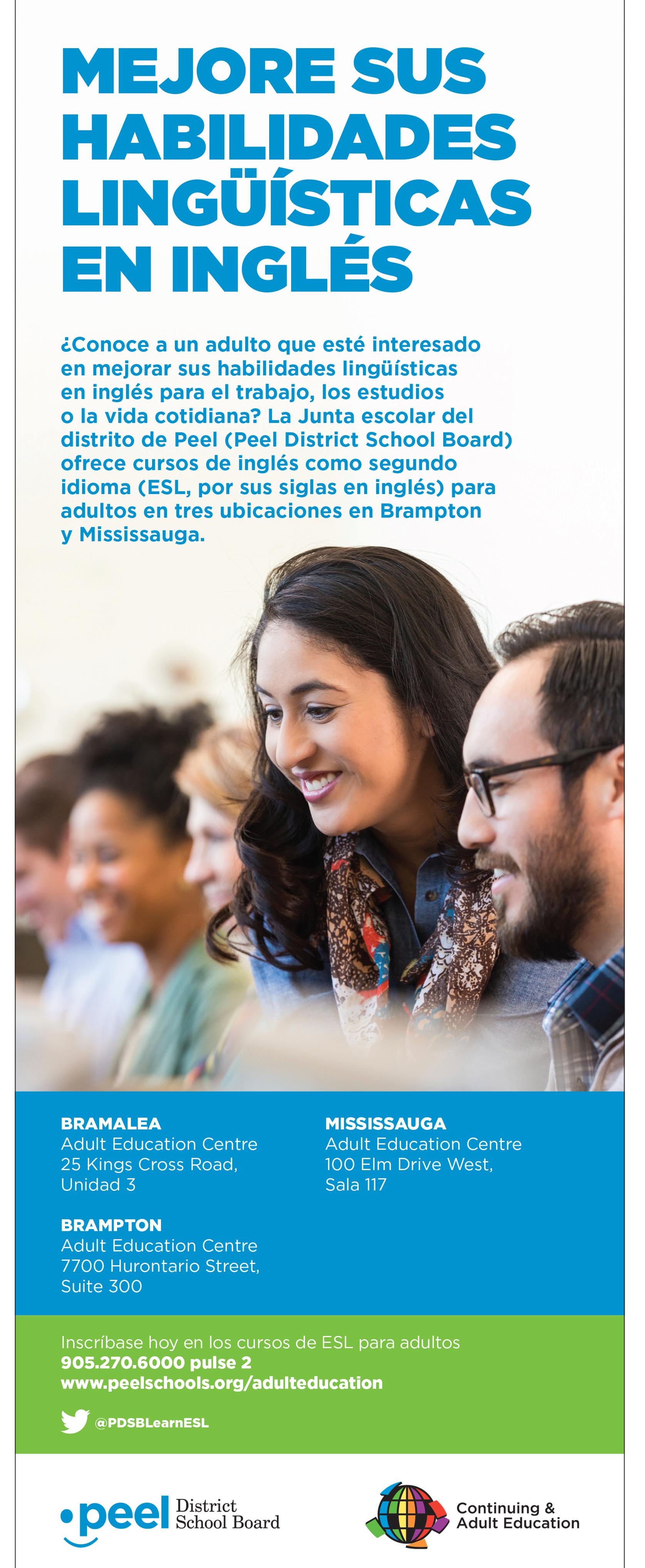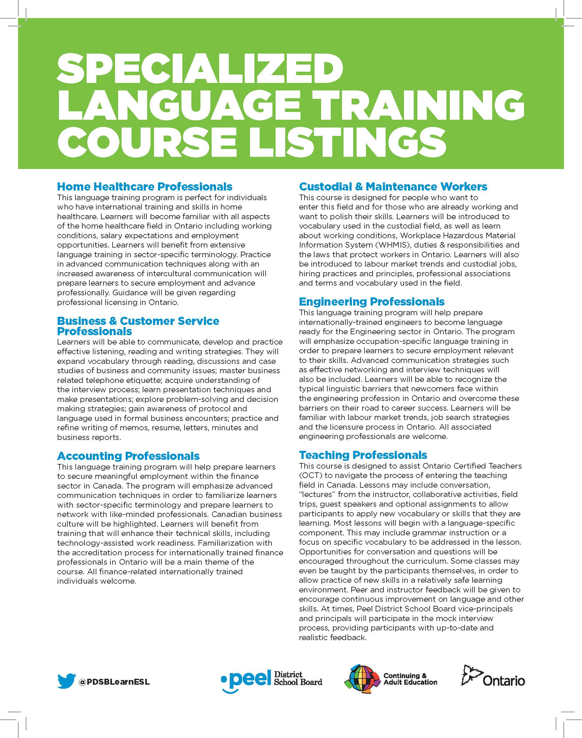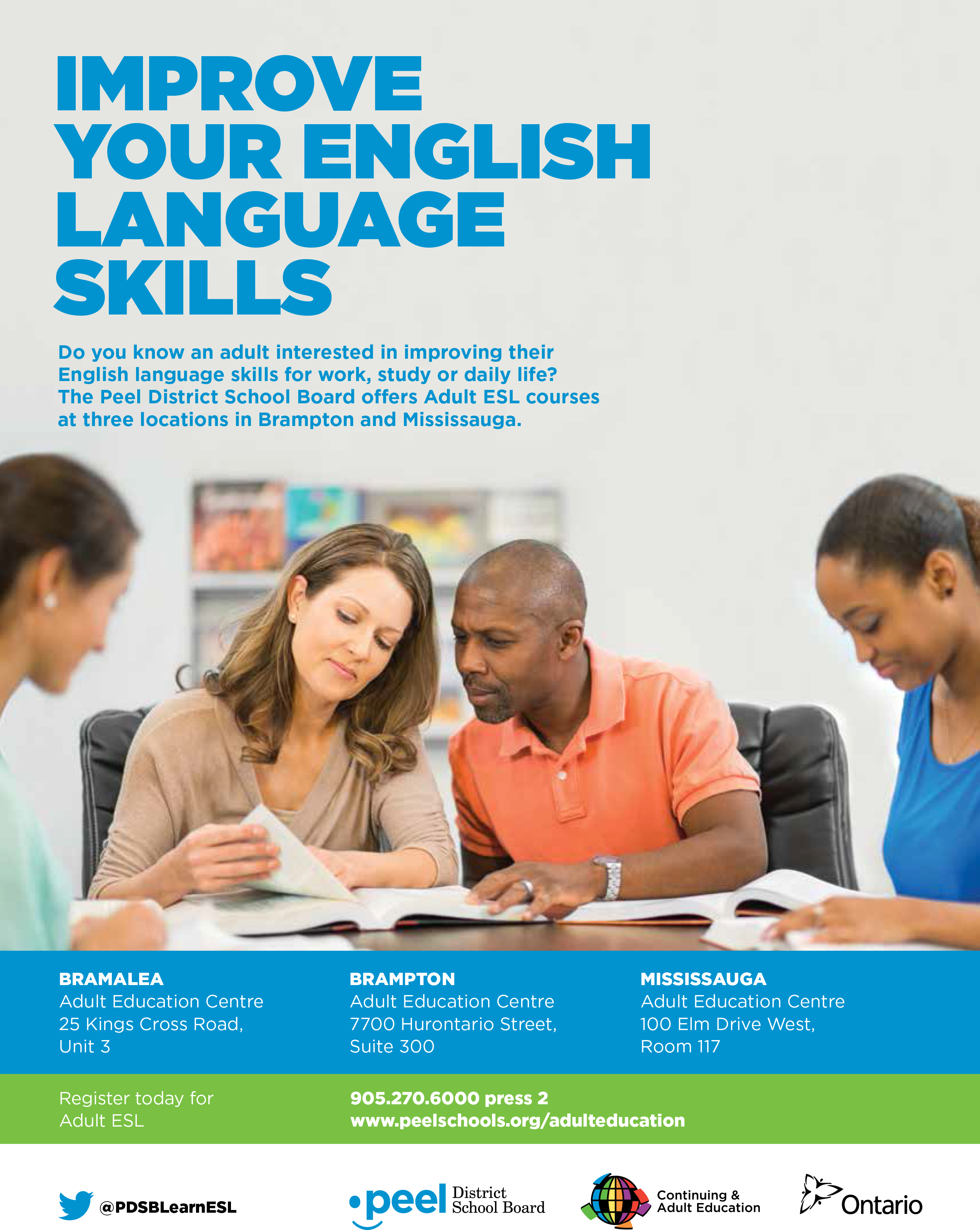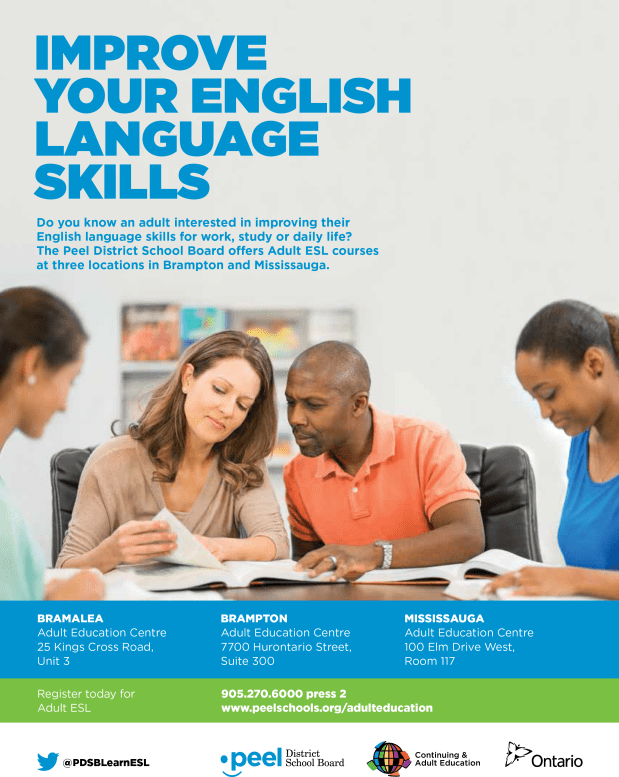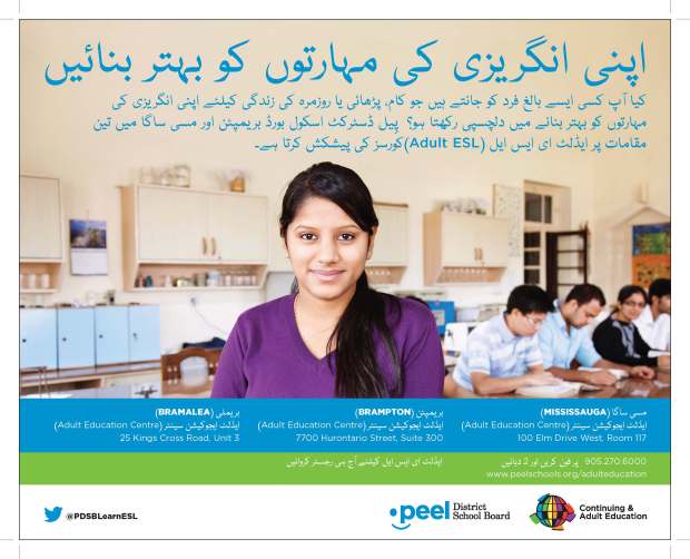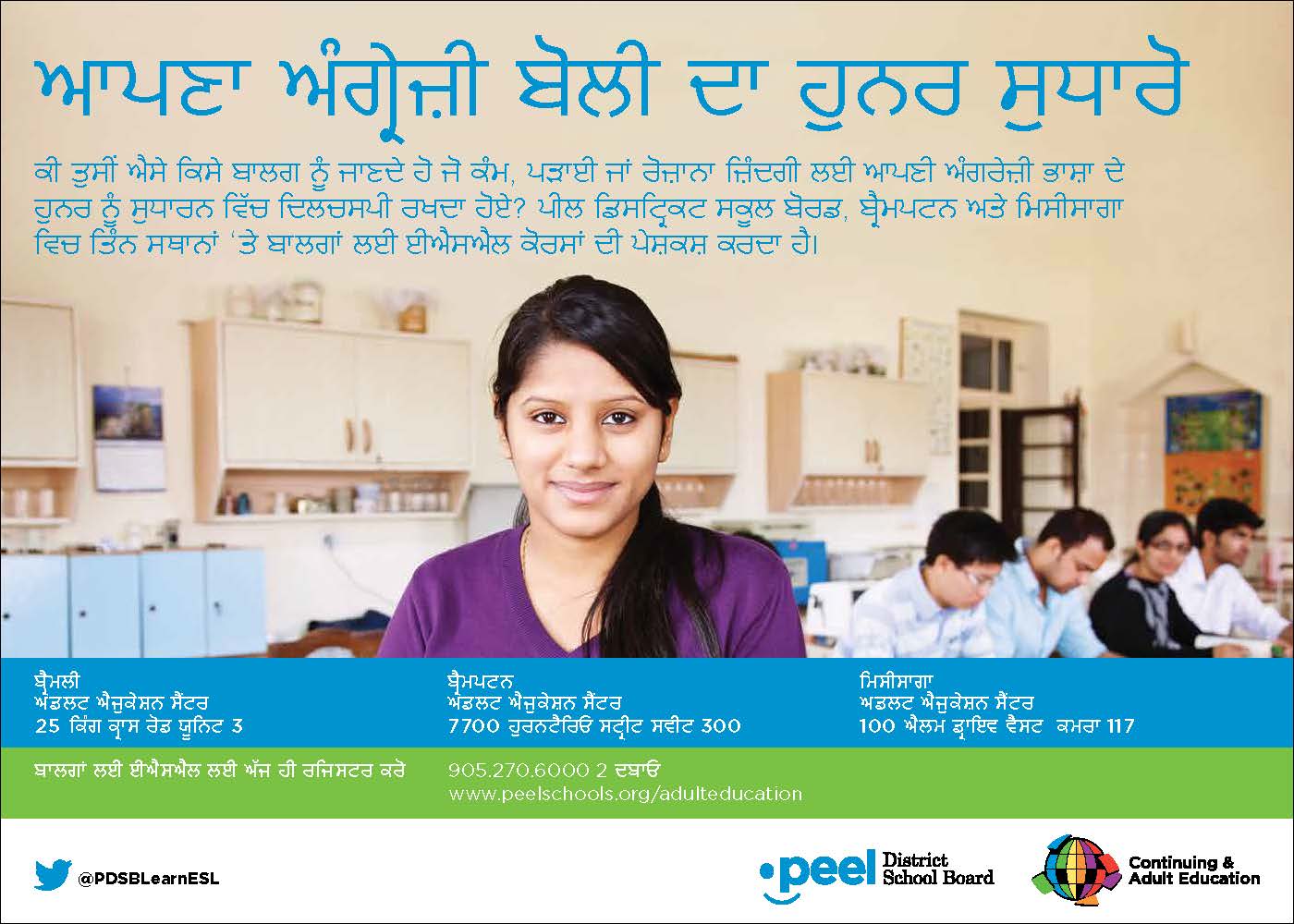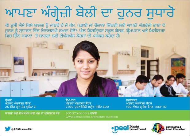 These are advertisements and flyers for the Peel District School Boards Continuing and Adult Education programs. I provided communications support for the ad content and coordinated the design and printing of the ads with external vendors. The flyers were distributed to community organizations, including community service centres, libraries and places of worship. Some of these ads were then adapted and published in ethnic newspapers across the Peel Region, including Arab News, Correo Canadiense, Eastern News, Gujarati Abroad, Hindi Abroad, Ming Tao, Parvasi and Uthayan.